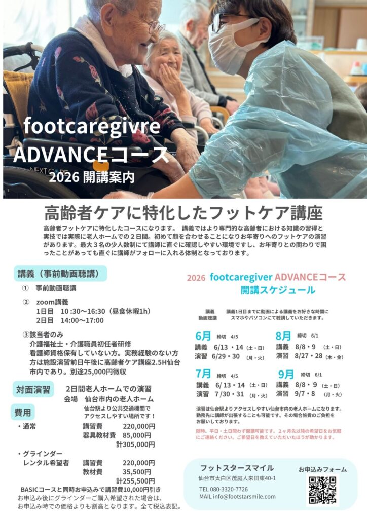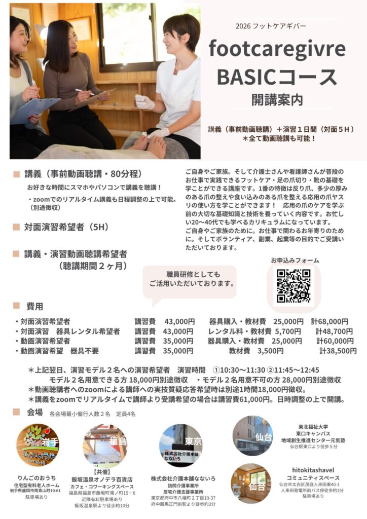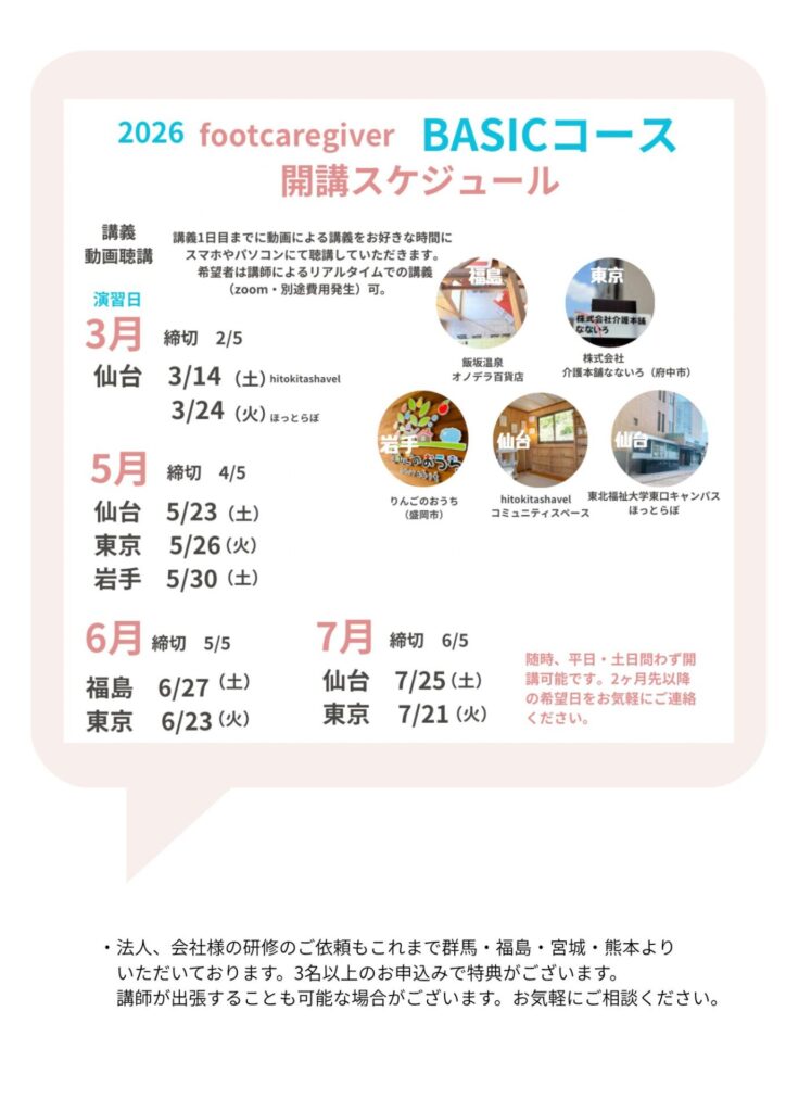 高齢者フットケアに特化したフットケアギバー講座の最新の開講スケジュールのご案内になります。