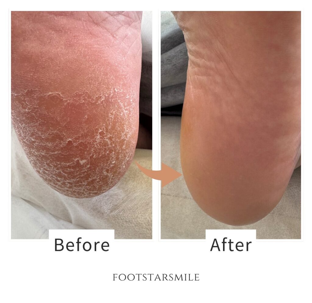 フットスタースマイルでは必要に応じてフットケアマシンで爪の表面を研磨し爪の厚みや凹凸を整え、爪脇の皮膚が硬い場合は柔らかさのある肌へと導いていきます。また爪と皮膚の間に溜まった古い角質を丁寧に取り除き、爪の土台のケアを徹底的に行っていくことで、より良い足爪へと導きます。根本的な現金が解決しないと巻爪は繰り返されます。当店は矯正をしない定期的なお爪のケアでご利用いただいているリピーター様が多いのが特徴です。