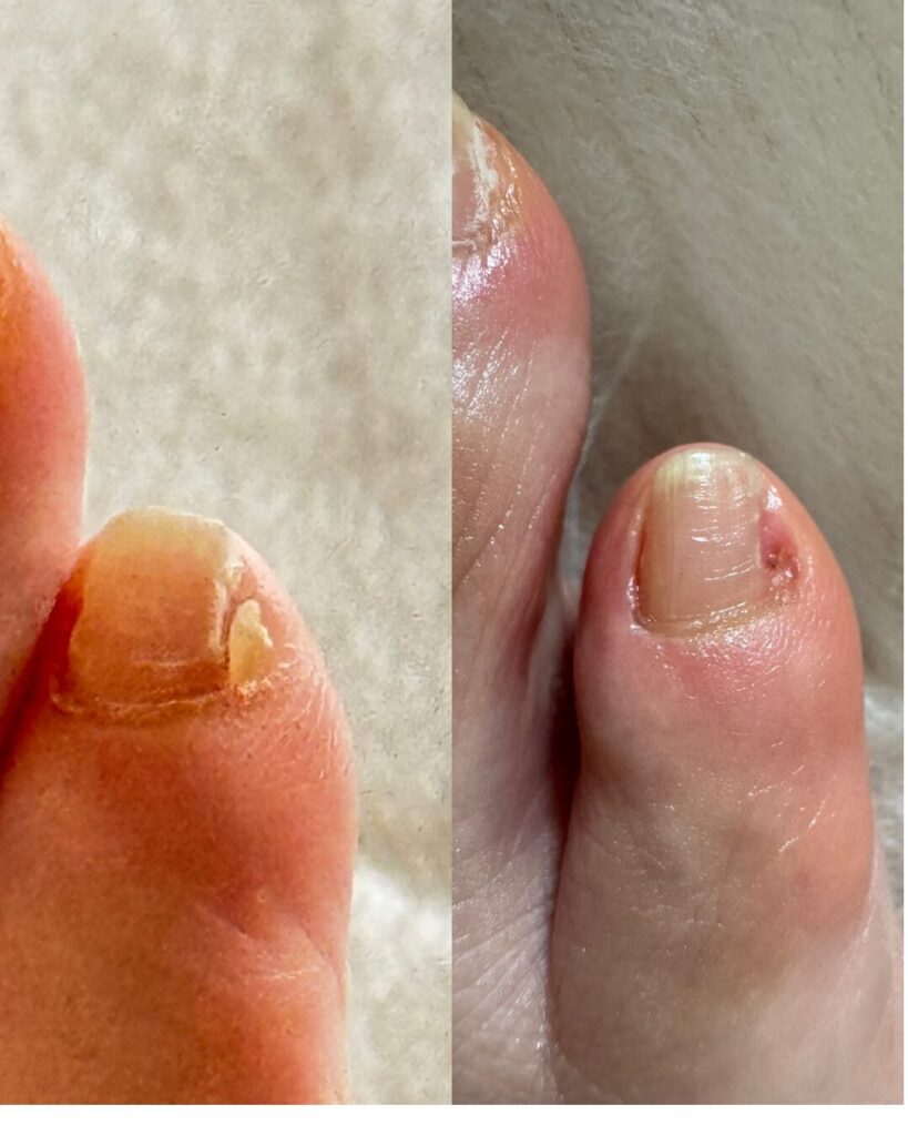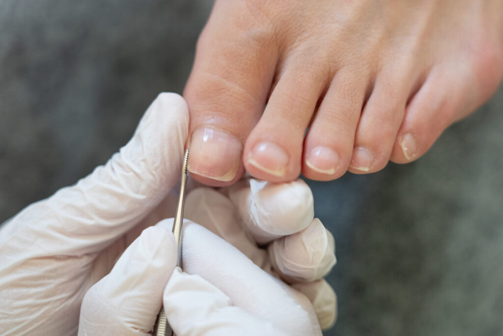巻爪は爪が湾曲し、爪の端が皮膚に食い込み痛みを伴う場合と痛みを伴わない場合があります。痛みがある場合、爪端を誤った切り方で切ってしまうと余計に痛みが増してしまったり、腫れや化膿を引き起こしてしまうことにも繋がり兼ねないのです。